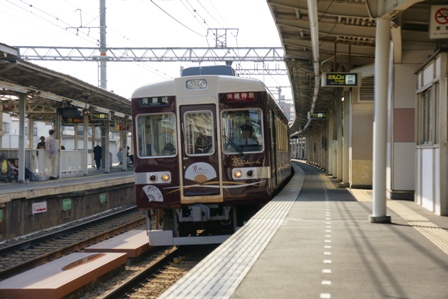 桂を出ると、次は淡路まで停まりません。停車駅アナウンスの後に嵐山についての観光案内が入りました。京都から帰りの下り列車で放送しても、とも 少し思 いましたが河原町方面から帰る人へ次は嵐山へアピールするのも大事なことなのでしょう。そういう意味では河原町へ行く京とれいんだけではなく、嵐山へ行く京とれいんが定期的に走っていてもいいと思います。