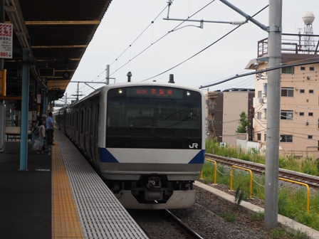 駅の東側からアプローチするから下から見えるのは上り2号線。ホームに急行がいるのが見える。