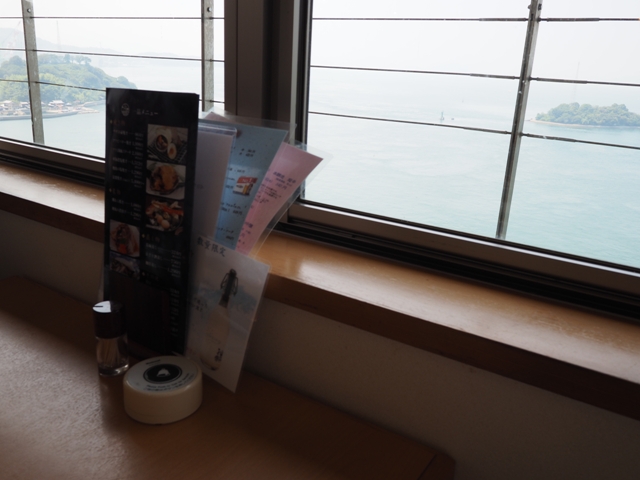 来島海峡をのぞむ絶景シートでランチ。
