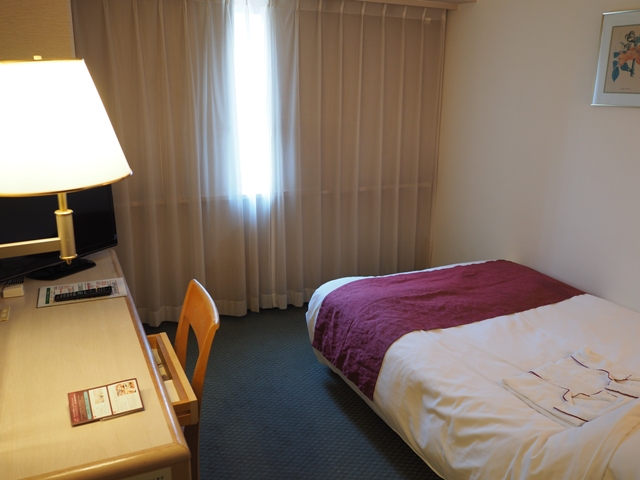 部屋は狭い。でもシングルならこんなもんか。十分に明るいのでいいか。