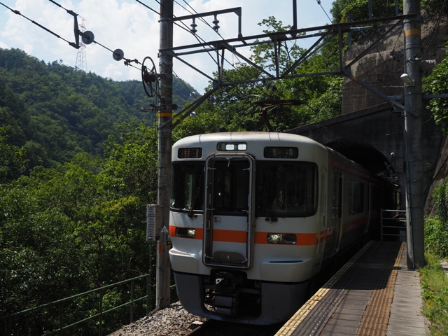 生野を過ぎて列車は下り坂を駆けていく。線路に寄り添う川はいつの間にか進行方向に流れている。分水嶺を越えたんだな。