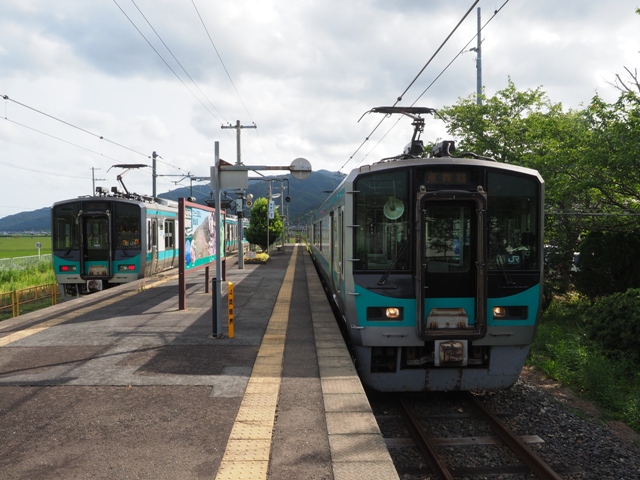 車内はのんびりした空気で、夏になると海水浴臨が大阪、名古屋から運転されていたのはもはや歴史の1ページでしかない。十村で下り普通と交換した。