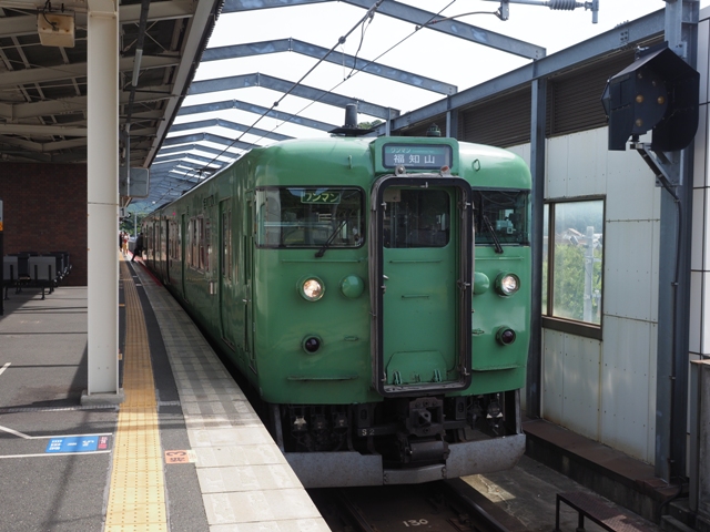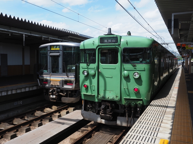 向かいのホームにいる福知山行332Mに乗り換え。113系の2連。今や貴重品だ。