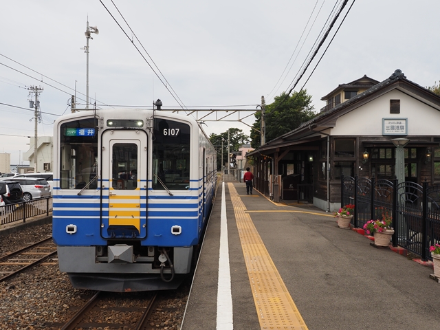 三国港で到着する列車を撮影する。