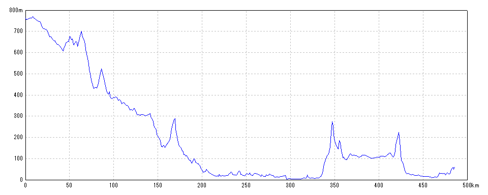 | 水平距離 | 485.64km | 沿面距離 | 486.27km |
