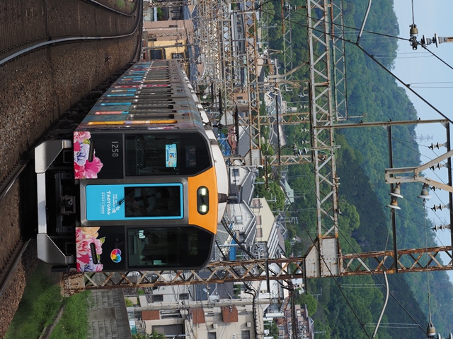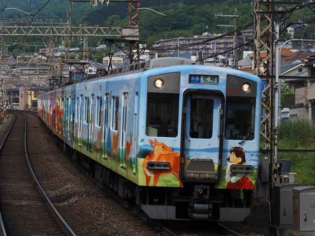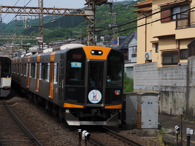 直通運転開始15周年記念のヘッドマークをつけた阪神1000系が奈良へと向かっていったので待ち構えたら見事にかぶられて涙。